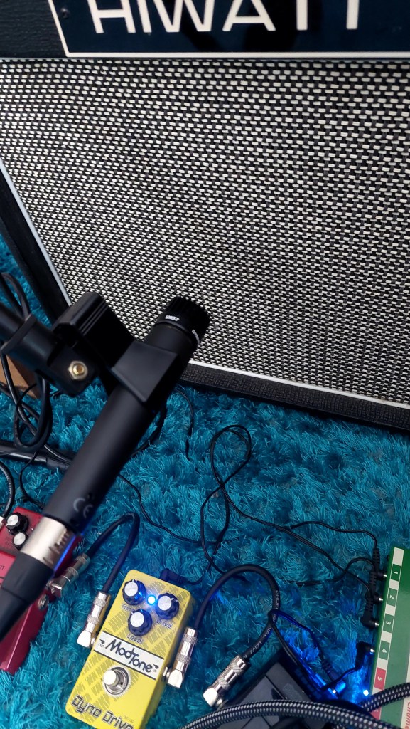 First in the signal chain is the guitar- a 2022 Squier Strat. Stock Standard. Fenders record keeping on serial numbers needs development with these strats, but I think its the Taiwan factory rather than mainland China. Not sure if there’s a difference in quality… its beyond my care factor. The pickup selector is in the middle position.